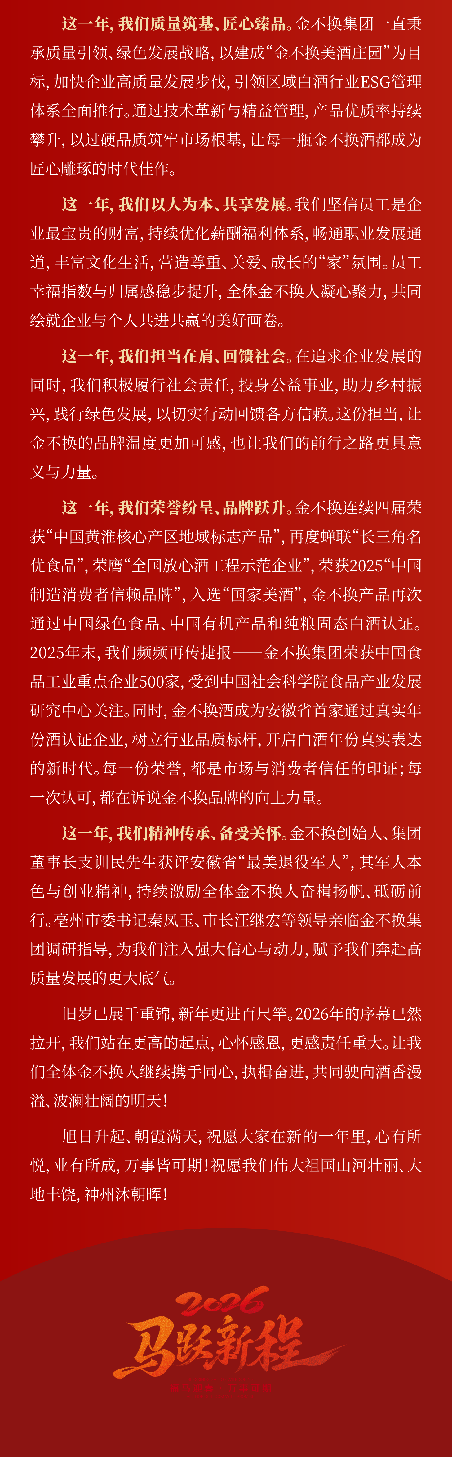 安徽金不換白酒集團(tuán)向全國人民拜年!