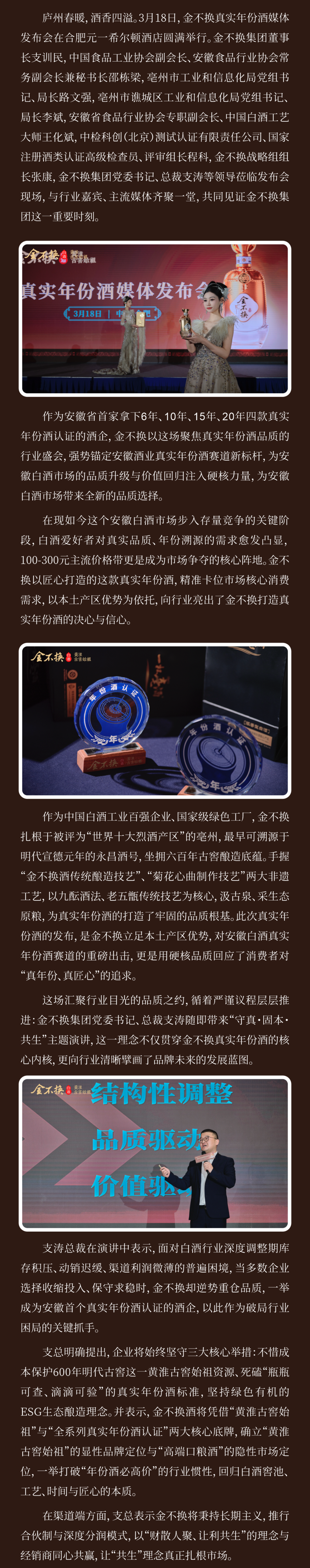 黃淮古窖始祖金不換,獲評(píng)安徽首家真實(shí)年份酒認(rèn)證企業(yè)
